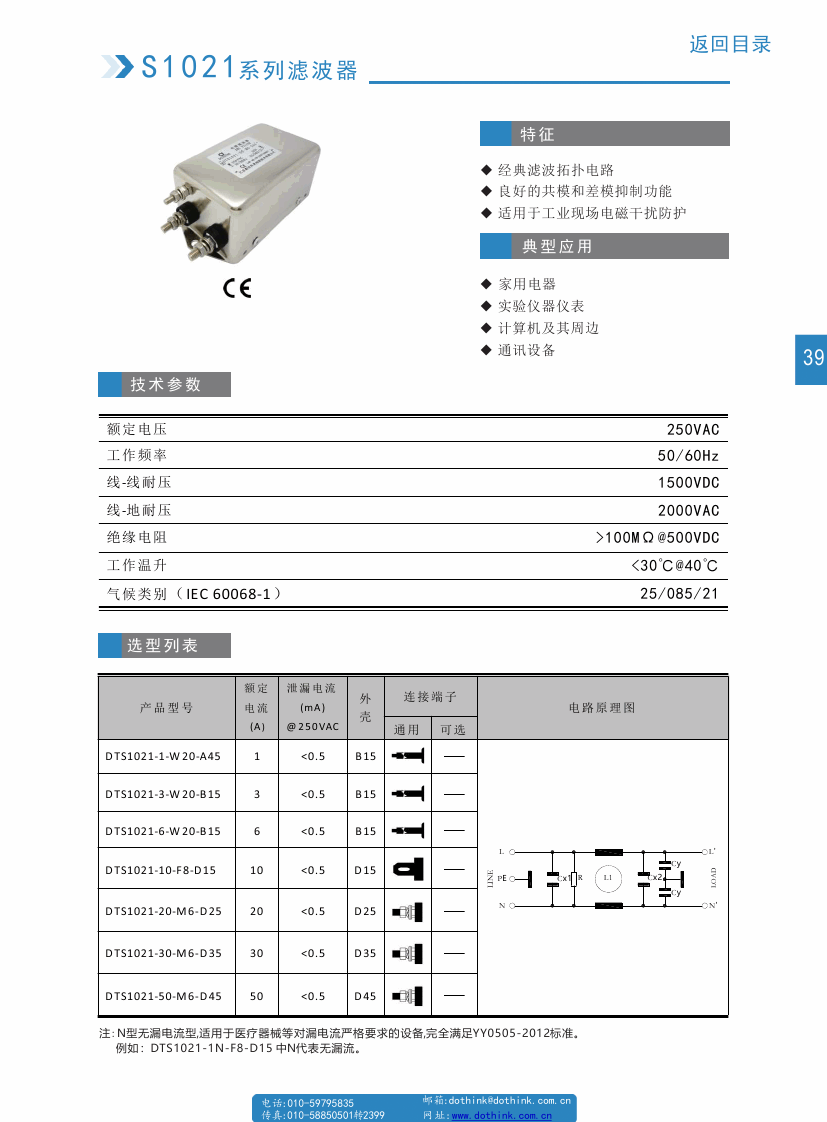 DTS1021系列交流電源濾波器